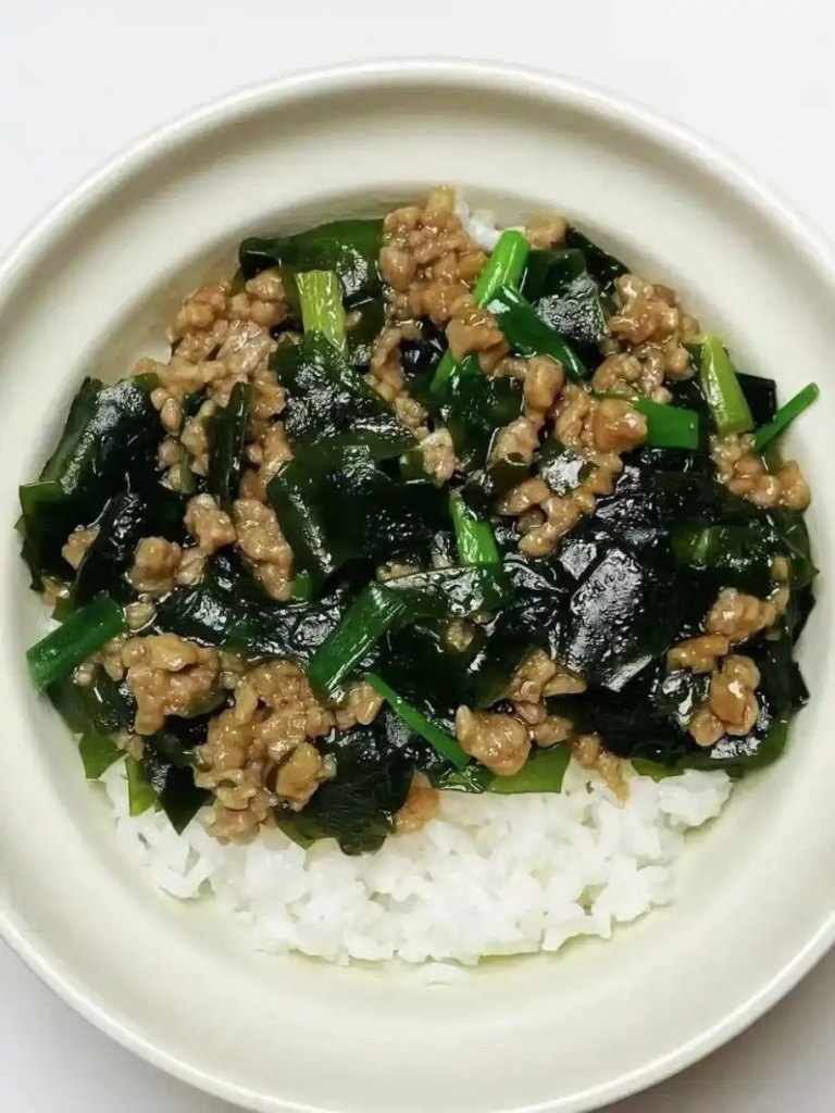 三、裙带菜炒肉末:高钙促消化,鲜掉眉毛